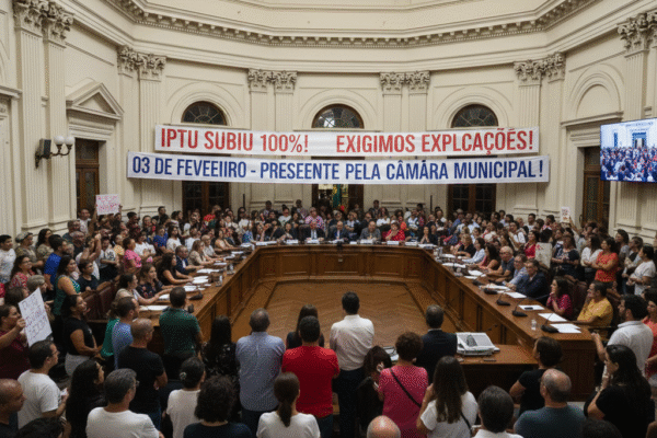 Cidadão, o seu bolso está em pauta! Diante do reajuste de 100% no Imposto Predial e Territorial Urbano (IPTU) anunciado para este ano, convidamos toda a sociedade civil organizada, comerciantes e moradores para uma mobilização geral na Câmara Municipal. O aumento, que dobra o valor da contribuição em relação ao ano anterior, gerou profunda preocupação…