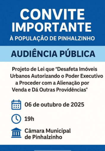 Para discutir o assunto, o presidente da Câmara, vereador José Ricardo Kiota, convocou audiência pública para o dia 6 de outubro, às 19h, no plenário da Câmara Municipal. A reunião será aberta à participação da comunidade.